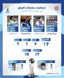 احصائيات مشاركات العراق في مونديالات الشباب…