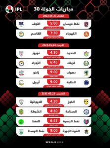 جريدة ان سبورت - خاص جدولُ مباريات الجولة الثلاثين من منافساتِ الدوري المُمتاز