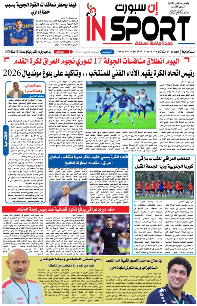 اخر الاخبار الرياضة العراقية عدد اليوم العدد (214) 28 -1 -2025 سنة واحدة ago Continue Reading Previous العدد (214) 28 -1- 2025Next دعم السوداني وعناد كأساس! اخبار ذات صلة اخر الاخبار الرياضة العراقية الكره العالمية الريال يجهز روديجر وأرنولد يومين ago اخر الاخبار الرياضة العراقية الكره العالمية حتى 2030.. باريس يخطف موهبة برشلونة يومين ago اخر الاخبار الرياضة العراقية الكره العالمية في مباراته الأولى.. شباك تيرشتيجن تهتز يومين ago اترك تعليقاً إلغاء الردلن يتم نشر عنوان بريدك الإلكتروني. الحقول الإلزامية مشار إليها بـ *التعليق * الاسم * البريد الإلكتروني * الموقع الإلكتروني احفظ اسمي، بريدي الإلكتروني، والموقع الإلكتروني في هذا المتصفح لاستخدامها المرة المقبلة في تعليقي.