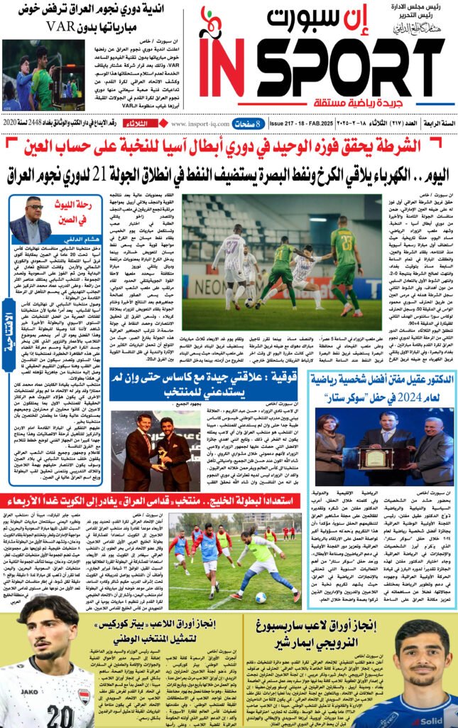 اخر الاخبار عدد اليوم العدد (217) 18- 2- 2025 12 شهر ago Continue Reading Previous بطل الشتاء .. زاخو الافضلNext رحلة الليوث في الصين اخبار ذات صلة اخر الاخبار الرياضة العراقية الكره العالمية الريال يجهز روديجر وأرنولد يومين ago اخر الاخبار الرياضة العراقية الكره العالمية حتى 2030.. باريس يخطف موهبة برشلونة يومين ago اخر الاخبار الرياضة العراقية الكره العالمية في مباراته الأولى.. شباك تيرشتيجن تهتز يومين ago اترك تعليقاً إلغاء الردلن يتم نشر عنوان بريدك الإلكتروني. الحقول الإلزامية مشار إليها بـ *التعليق * الاسم * البريد الإلكتروني * الموقع الإلكتروني احفظ اسمي، بريدي الإلكتروني، والموقع الإلكتروني في هذا المتصفح لاستخدامها المرة المقبلة في تعليقي.