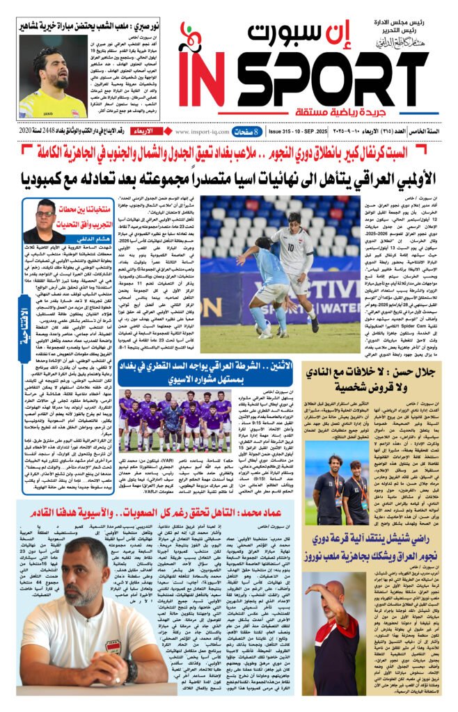 اخر الاخبار الرياضة العراقية عدد اليوم العدد (315) 10 – 9 – 2025 5 أشهر ago Continue Reading Previous صفقة إيزاك.. ليفربول يكتب التاريخ بـ 130 مليوناNext منتخباتنا بين محطات التجريب وأفق التحديات اخبار ذات صلة اخر الاخبار الرياضة العراقية الكره العالمية الريال يجهز روديجر وأرنولد يومين ago اخر الاخبار الرياضة العراقية الكره العالمية حتى 2030.. باريس يخطف موهبة برشلونة يومين ago اخر الاخبار الرياضة العراقية الكره العالمية في مباراته الأولى.. شباك تيرشتيجن تهتز يومين ago اترك تعليقاً إلغاء الردلن يتم نشر عنوان بريدك الإلكتروني. الحقول الإلزامية مشار إليها بـ *التعليق * الاسم * البريد الإلكتروني * الموقع الإلكتروني احفظ اسمي، بريدي الإلكتروني، والموقع الإلكتروني في هذا المتصفح لاستخدامها المرة المقبلة في تعليقي.