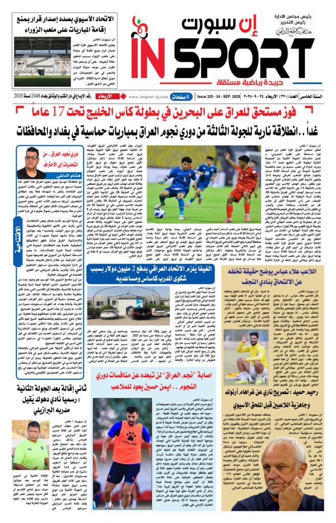 اخر الاخبار الرياضة العراقية عدد اليوم العدد (320 ) 24 – 9 -2025 4 أشهر ago Continue Reading Previous في المواجهة الـ 40.. الملاعب الإيطالية تفسد رحلات دورتموندNext فوز مستحق للعراق على البحرين في بطولة كأس الخليج تحت 17 عاماً اخبار ذات صلة اخر الاخبار الرياضة العراقية الكره العالمية الريال يجهز روديجر وأرنولد يوم واحد ago اخر الاخبار الرياضة العراقية الكره العالمية حتى 2030.. باريس يخطف موهبة برشلونة يوم واحد ago اخر الاخبار الرياضة العراقية الكره العالمية في مباراته الأولى.. شباك تيرشتيجن تهتز يوم واحد ago اترك تعليقاً إلغاء الردلن يتم نشر عنوان بريدك الإلكتروني. الحقول الإلزامية مشار إليها بـ *التعليق * الاسم * البريد الإلكتروني * الموقع الإلكتروني احفظ اسمي، بريدي الإلكتروني، والموقع الإلكتروني في هذا المتصفح لاستخدامها المرة المقبلة في تعليقي.