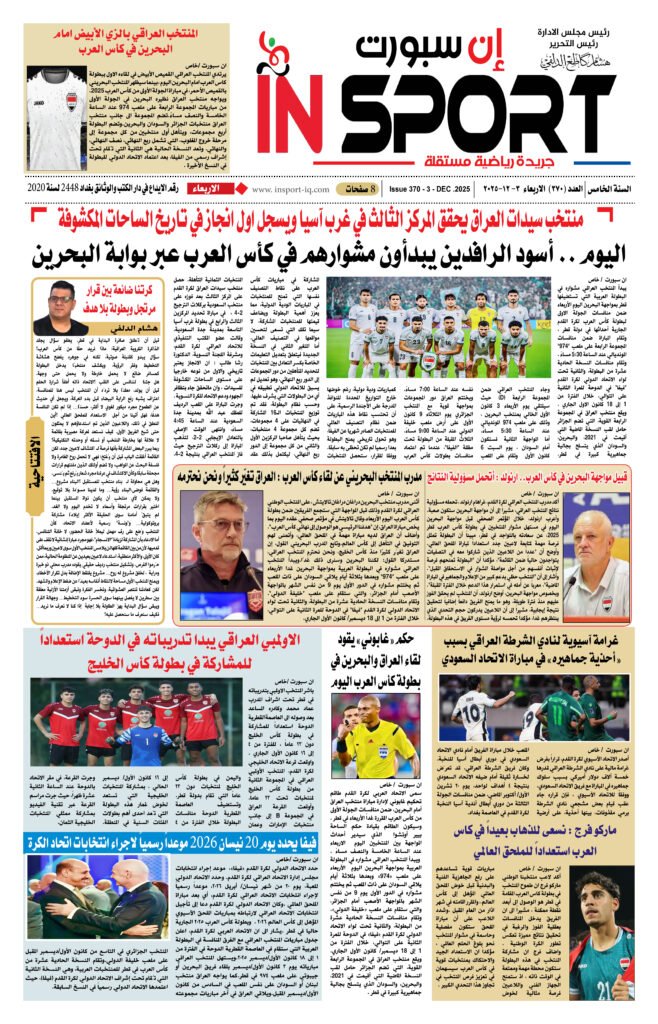 اخر الاخبار الرياضة العراقية الكره العالمية عدد اليوم العدد (370) 3- 12- 2025 شهرين ago Continue Reading Previous إيران تقاطع قرعة مونديال 2026Next كرتنا ضائعة بين قرار مرتجل وبطولة بلا هدف اخبار ذات صلة اخر الاخبار الرياضة العراقية الكره العالمية الريال يجهز روديجر وأرنولد يوم واحد ago اخر الاخبار الرياضة العراقية الكره العالمية حتى 2030.. باريس يخطف موهبة برشلونة يوم واحد ago اخر الاخبار الرياضة العراقية الكره العالمية في مباراته الأولى.. شباك تيرشتيجن تهتز يوم واحد ago اترك تعليقاً إلغاء الردلن يتم نشر عنوان بريدك الإلكتروني. الحقول الإلزامية مشار إليها بـ *التعليق * الاسم * البريد الإلكتروني * الموقع الإلكتروني احفظ اسمي، بريدي الإلكتروني، والموقع الإلكتروني في هذا المتصفح لاستخدامها المرة المقبلة في تعليقي.
