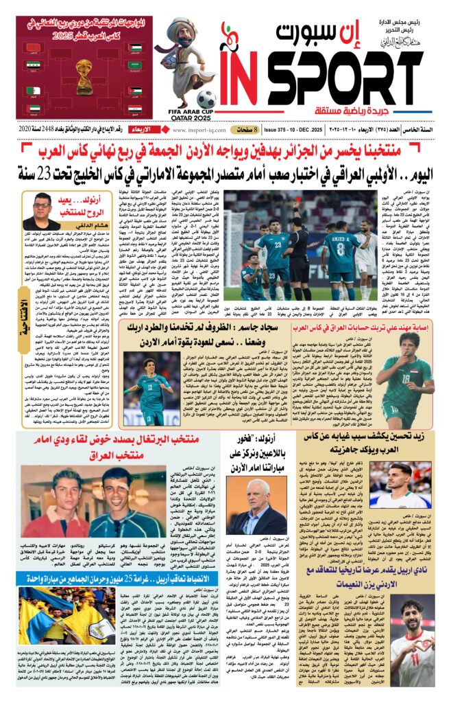 اخر الاخبار الرياضة العراقية عدد اليوم العدد (375 ) 10 – 12 -2025 شهرين ago Continue Reading Previous بهدف قاتل في قطر.. الفلسطيني يواصل هوايته أمام المنظّمينNext أرنولد… يعيد الروح للمنتخب اخبار ذات صلة اخر الاخبار الرياضة العراقية الكره العالمية الريال يجهز روديجر وأرنولد يوم واحد ago اخر الاخبار الرياضة العراقية الكره العالمية حتى 2030.. باريس يخطف موهبة برشلونة يوم واحد ago اخر الاخبار الرياضة العراقية الكره العالمية في مباراته الأولى.. شباك تيرشتيجن تهتز يوم واحد ago اترك تعليقاً إلغاء الردلن يتم نشر عنوان بريدك الإلكتروني. الحقول الإلزامية مشار إليها بـ *التعليق * الاسم * البريد الإلكتروني * الموقع الإلكتروني احفظ اسمي، بريدي الإلكتروني، والموقع الإلكتروني في هذا المتصفح لاستخدامها المرة المقبلة في تعليقي.