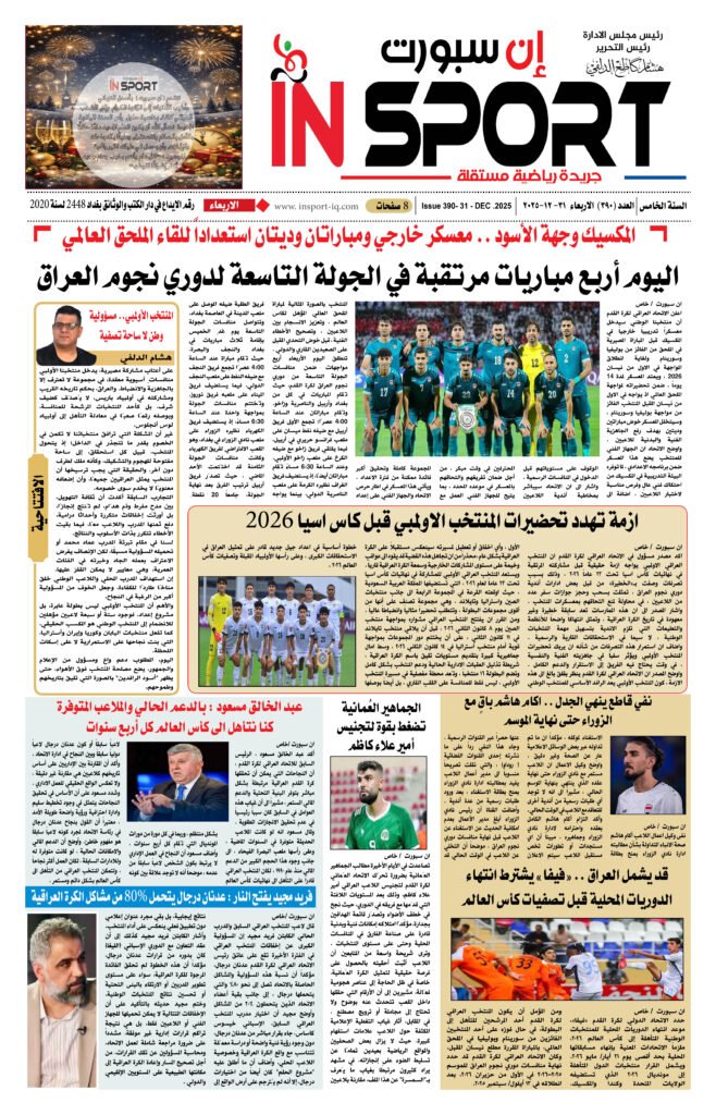 اخر الاخبار الرياضة العراقية عدد اليوم العدد (390 ) 31-12-2025 4 أسابيع ago Continue Reading Previous ميندي يتصدر أرقام الحراسة السنغالية.. ويلحق ببونوNext المنتخب الأولمبي… مسؤولية وطن لا ساحة تصفية اخبار ذات صلة اخر الاخبار الرياضة العراقية الكره العالمية الريال يجهز روديجر وأرنولد يوم واحد ago اخر الاخبار الرياضة العراقية الكره العالمية حتى 2030.. باريس يخطف موهبة برشلونة يوم واحد ago اخر الاخبار الرياضة العراقية الكره العالمية في مباراته الأولى.. شباك تيرشتيجن تهتز يوم واحد ago اترك تعليقاً إلغاء الردلن يتم نشر عنوان بريدك الإلكتروني. الحقول الإلزامية مشار إليها بـ *التعليق * الاسم * البريد الإلكتروني * الموقع الإلكتروني احفظ اسمي، بريدي الإلكتروني، والموقع الإلكتروني في هذا المتصفح لاستخدامها المرة المقبلة في تعليقي.