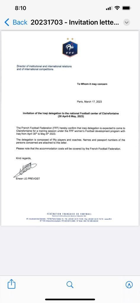 وقالت في توضيح : تود المديرية العامة للرياضة في إقليم كوردستان أن تبين للرأي العام والمعنيين أن وفد الفريق النسوي لكرة القدم الذي قد سافر إلى فرنسا كان باتفاق الاتحاد العراقي لكرة القدم والمركز الوطني الفرنسي لكرة القدم في كليرفونتين، وذلك بناء على كتاب دعوة باللغة الإنجليزية والذي يؤكد أن الاتحاد الفرنسي لكرة القدم قد فاتح الوفد العراقي وليس الكوردستاني”.
