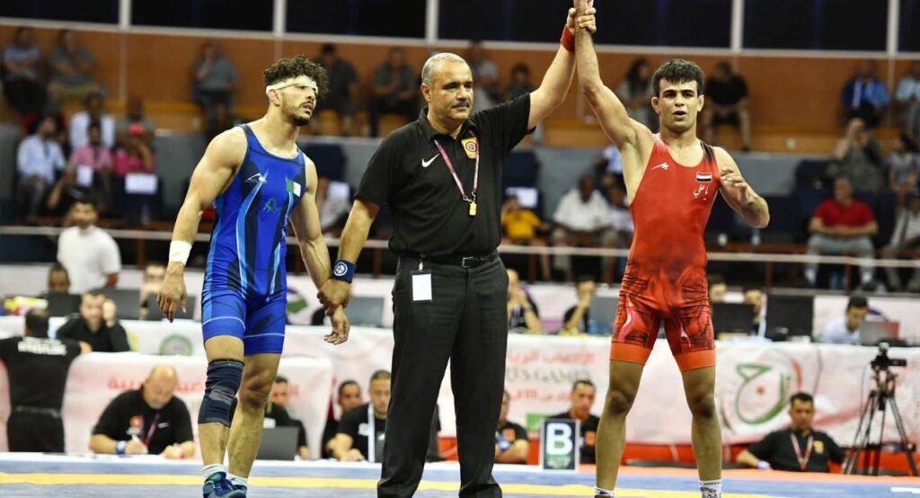 وأضاف أن “الوسام الذهبي الخامس الأخير جاء بعد تقديم مصارعنا خطاب عمر بوزن (57 كغم) مستوى رائع، ليستحق الفوز عن جدارة على المصارع الجزائري الذي حظى بمؤازرة جماهيرية”، مبيناً أن “المصارع العراقي احمد صلاح أحرز أيضا الميدالية الفضية بوزن (125 كغم) بعد انسحابه أمام المصارع السوري، نتيجة تعرضه الى إصابة مفاجأة في بداية النزال”.